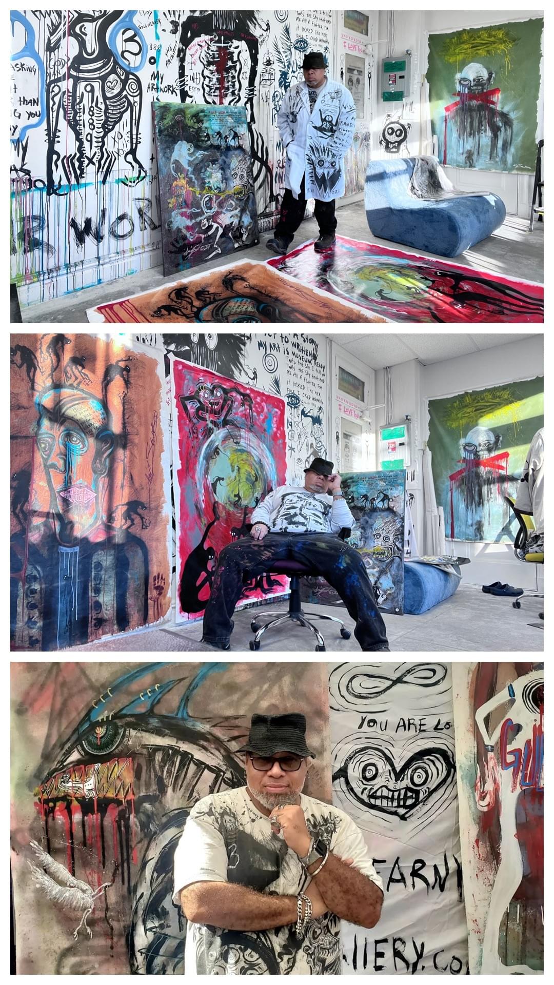In 2020, during the outbreak, there needed to be a reflection, a light illuminated by creativity, and abstract clarity, a visual realization of emotions projected through the eyes of art. WHITE SKY GALLERY took note of an artist hidden in the shadows, surrounded by large finished canvases in a chaotic studio that expressed an indescribable thought-provoking healing experience. Right then and there is when